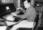 Joe Meek sitting at the 12 channel EMI mixing console that was the main mixer at Lansdowne studios from 1957 to 1970.